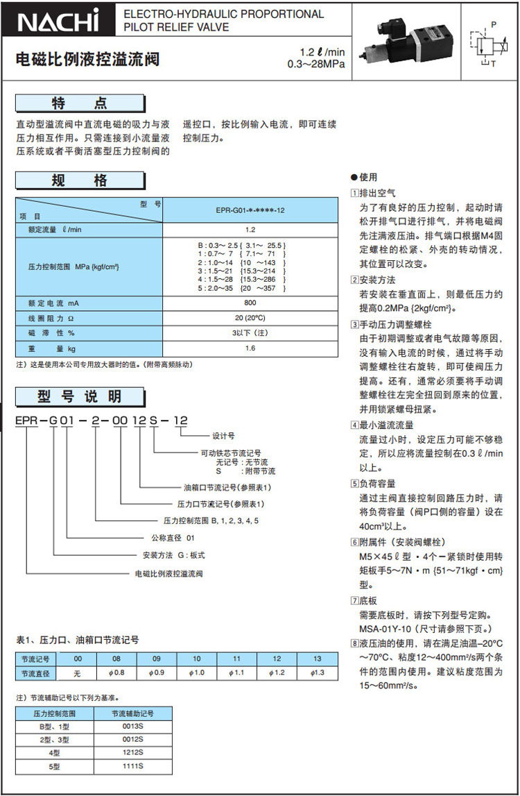 EFR-G01-B-0013S-12,EFR-G01-1-0013S-12,EFR-G01-2-0012S-12,EFR-G01-5-1111S-12,NACHI电磁比例液控溢流阀