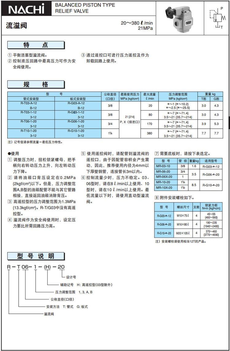 R-T03,R-T06,R-T10,R-G03,R-G06,R-G10,R-T03-A-12,R-T10-3-12,R-T06-3-12,R-G06-3-12,R-G10-3-12,NACHI溢流阀