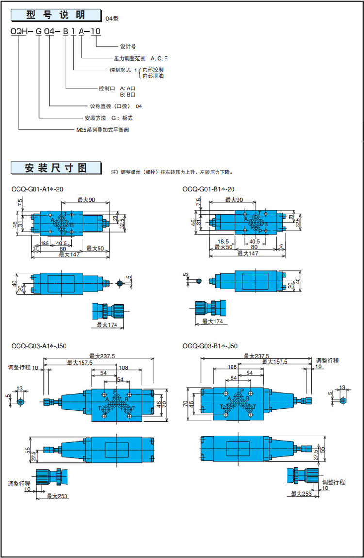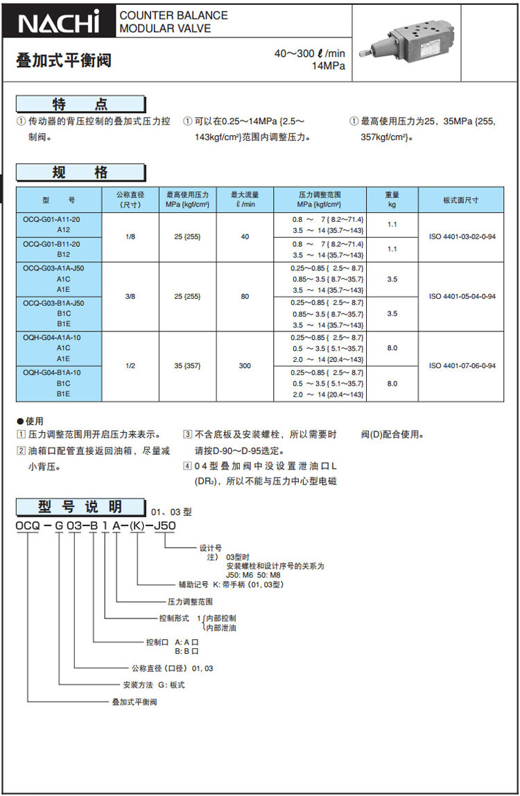 OCQ-G01,OCQ-G03,OCQ-G04,OCQ-G01-A11-20,OCQ-G04-A1E-10,NACHI叠加式平衡阀