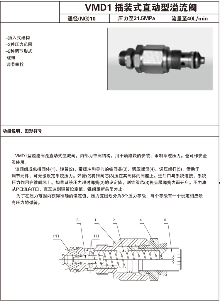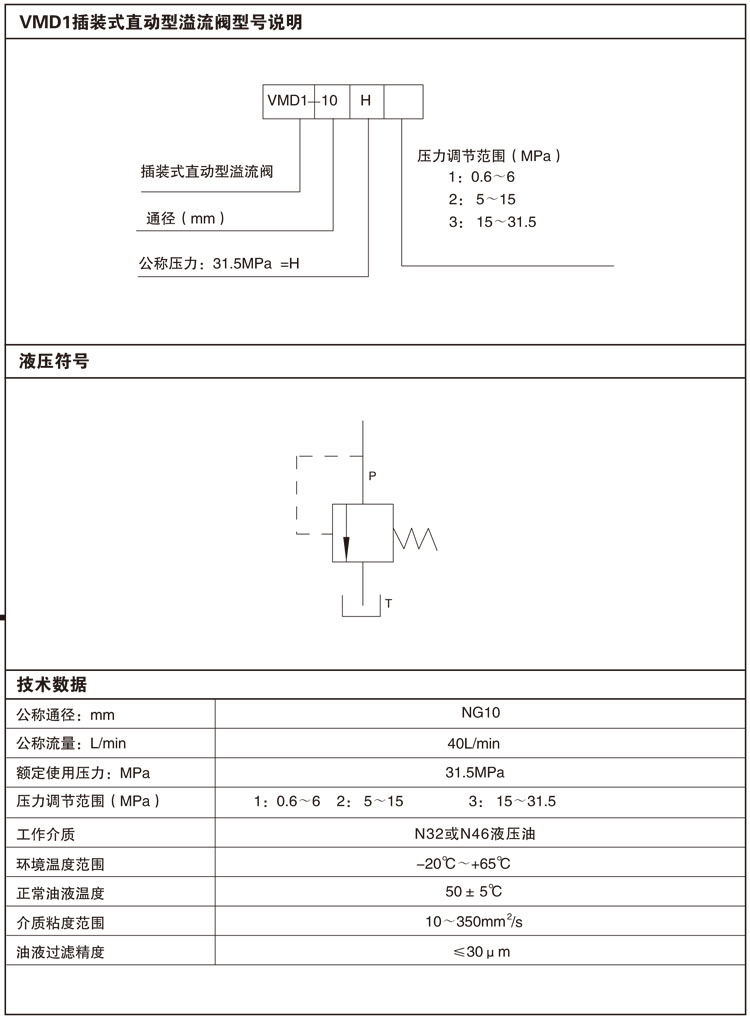 VMD1-10H1,VMD1-10H2,VMD1-10H3,插装式直动型溢流阀