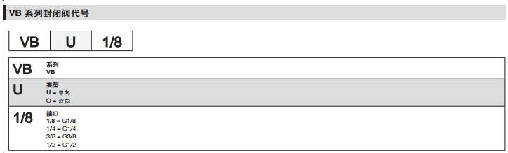 VBU1/8,VBU1/4,VBU3/8,VBU1/2,VBO1/8,VBO1/4,VBO3/8