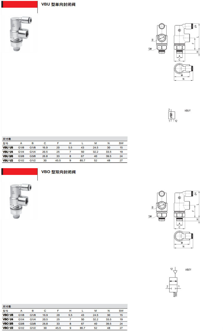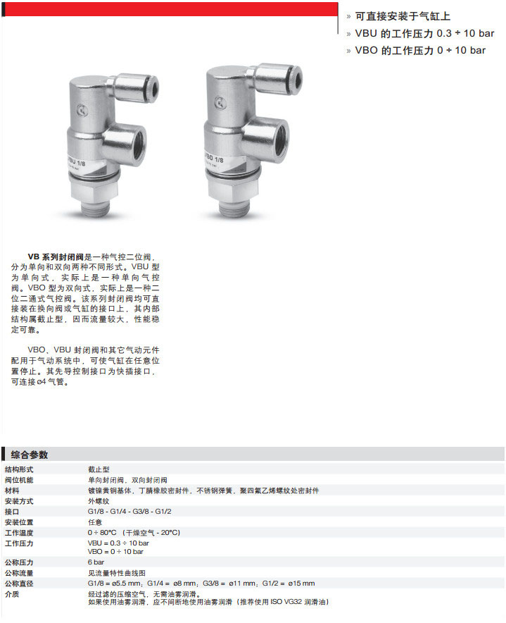 VBU1/8,VBU1/4,VBU3/8,VBU1/2,VBO1/8,VBO1/4,VBO3/8,camozzi封闭阀