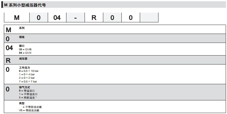 M008-R00,M008-R21,M004-R05,M004-R70,M008-R11,camozzi小型减压器