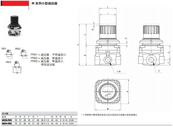 M008-R00,M008-R21,M004-R05,M004-R70,M008-R11,M008-R75,camozzi小型减压器