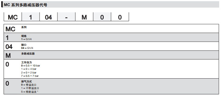 MC104-M00,MC104-M01,MC104-M11,MC104-M25,MC104-M70,camozzi多路减压器