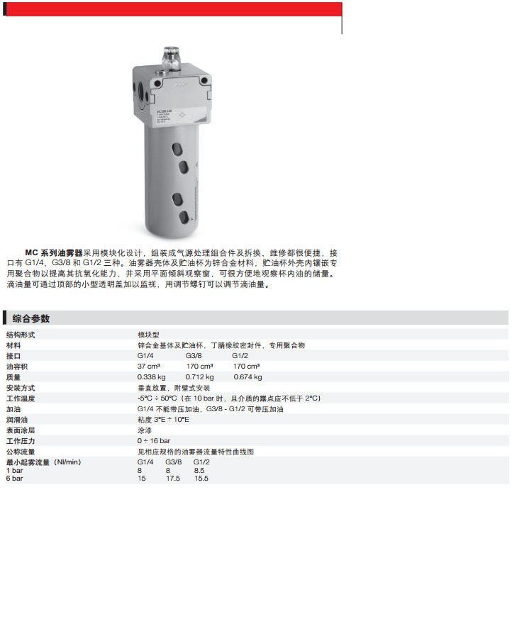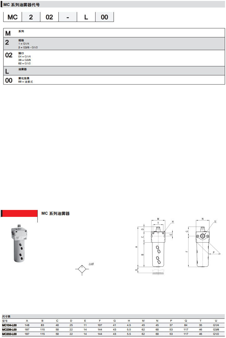 MC104-L00,MC138-L00,MC102-L00,MC204-L00,MC238-L00,camozzi油雾器