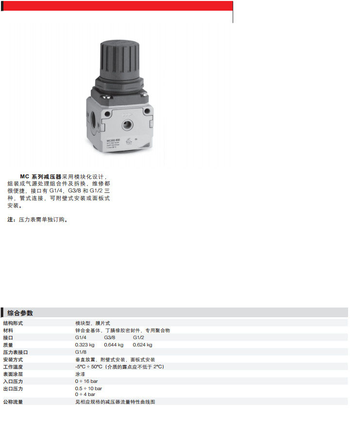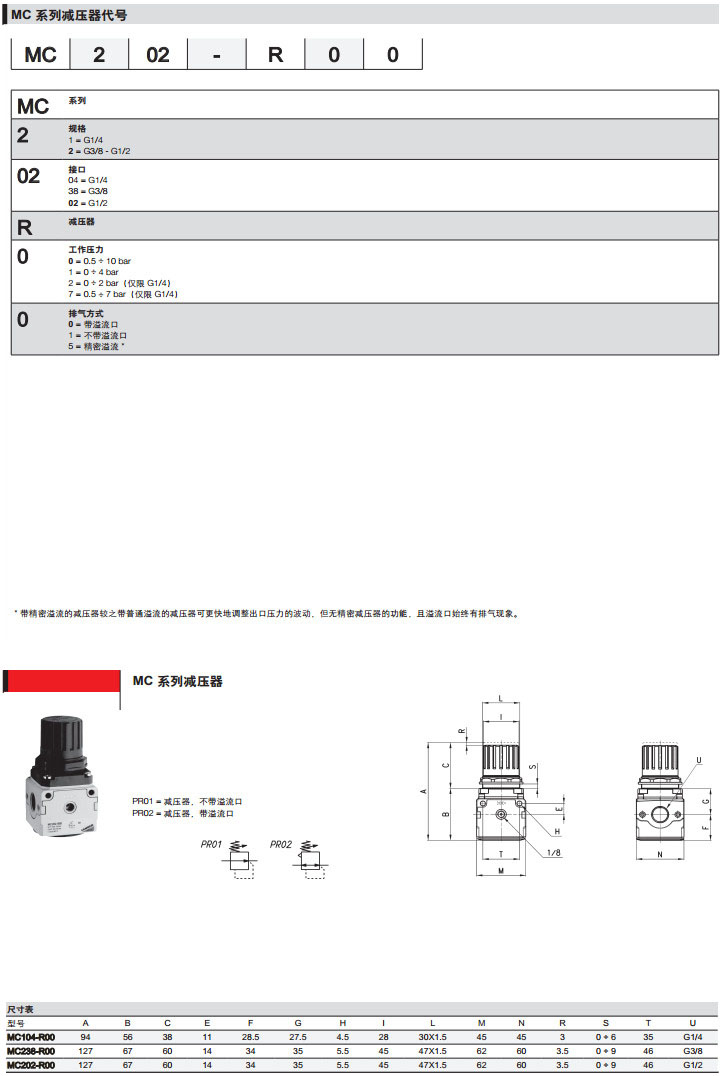 MC104-R00,MC138-R21,MC204-R25,MC238-R70,MC102-R10,MC202-R71,camozzi减压器