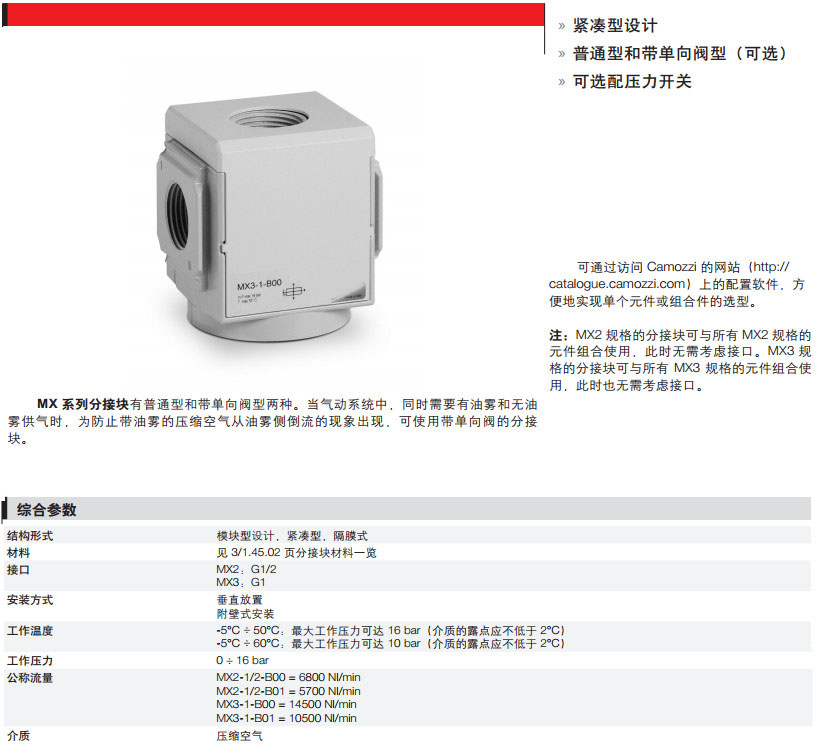 MX2-1/2-B00,MX2-1/2-B01,MX2-1-B00,MX3-1-B00,MX3-1-B01,camozzi分气块