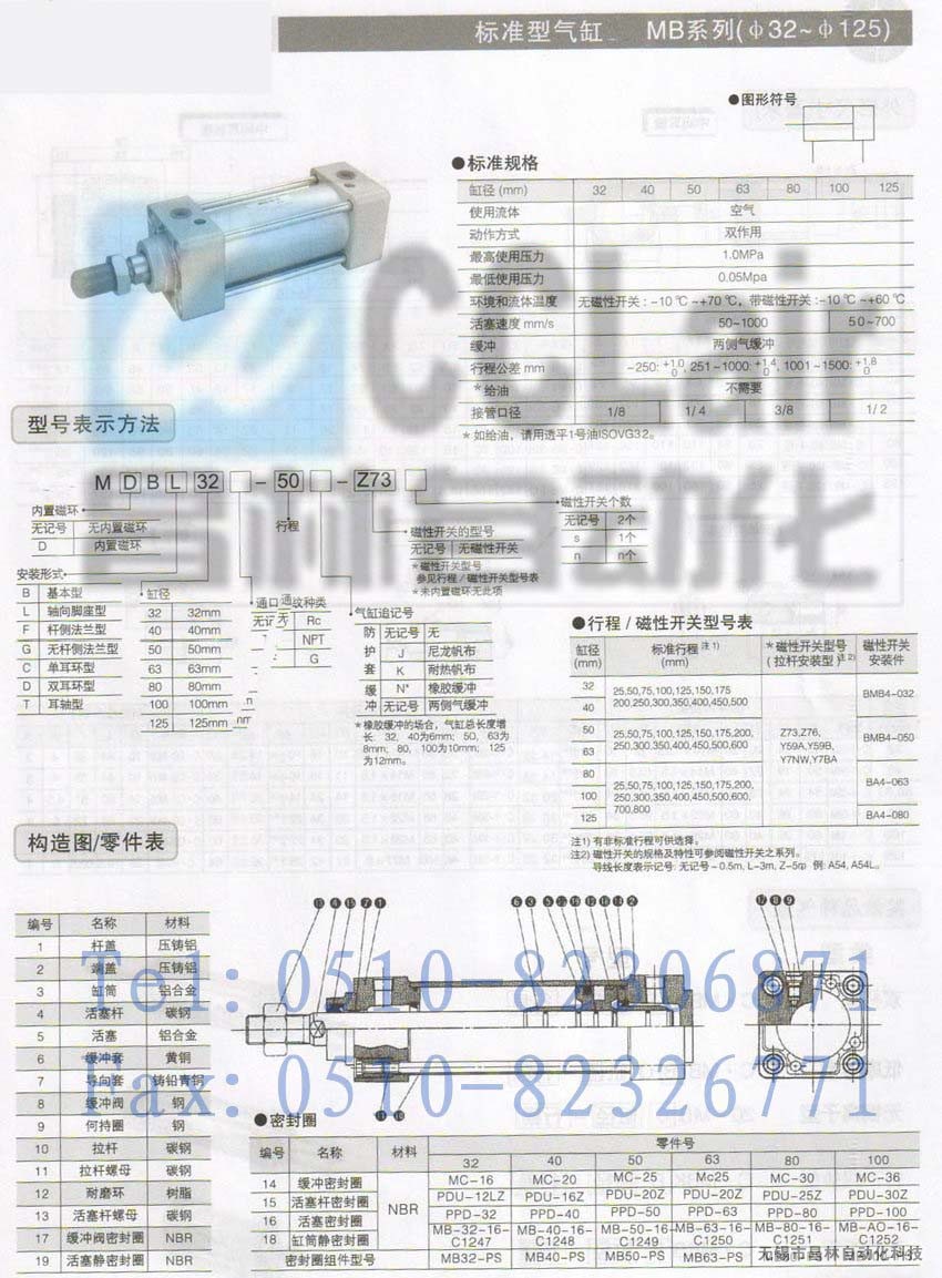 MDBC100-25,MDBC100-50,MDBC100-75,MDBC100-100,标准型气缸