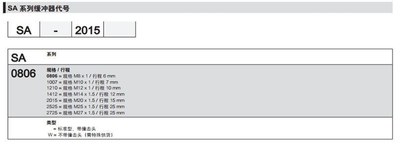 SA-0806,SA-1007,SA-1210,SA-1412,SA-2015W,SA-2525W,SA-2725W,camozzi缓冲器