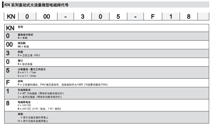 KN000-305-F12,KN000-306-F18,KN000-305-F22M,KN000-306-F28M,camozzi直动式大流量微型电磁阀