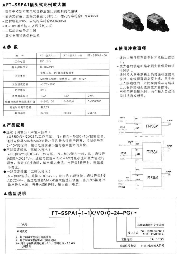 FT-SSPA1-1,FT-SSPA1-5,FT-SSPA1-50,插头式比例放大器