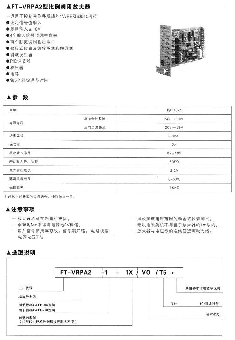 FT-VRPA2-1-1X/VO/T5,比例阀用放大器