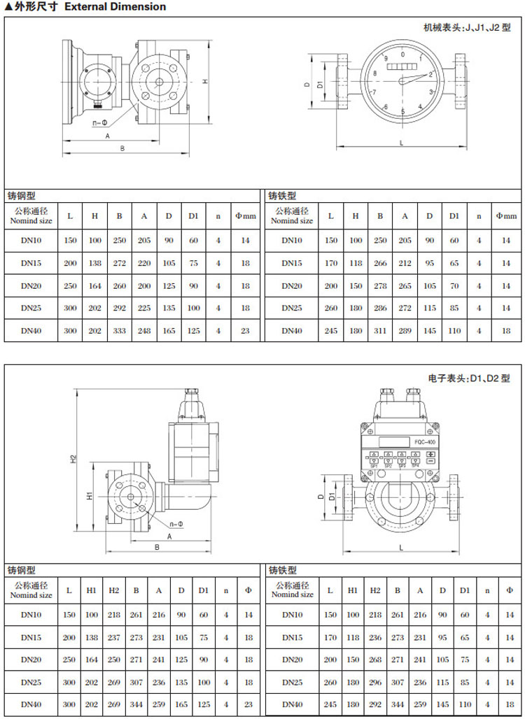 FQC-400,椭圆齿轮流量计