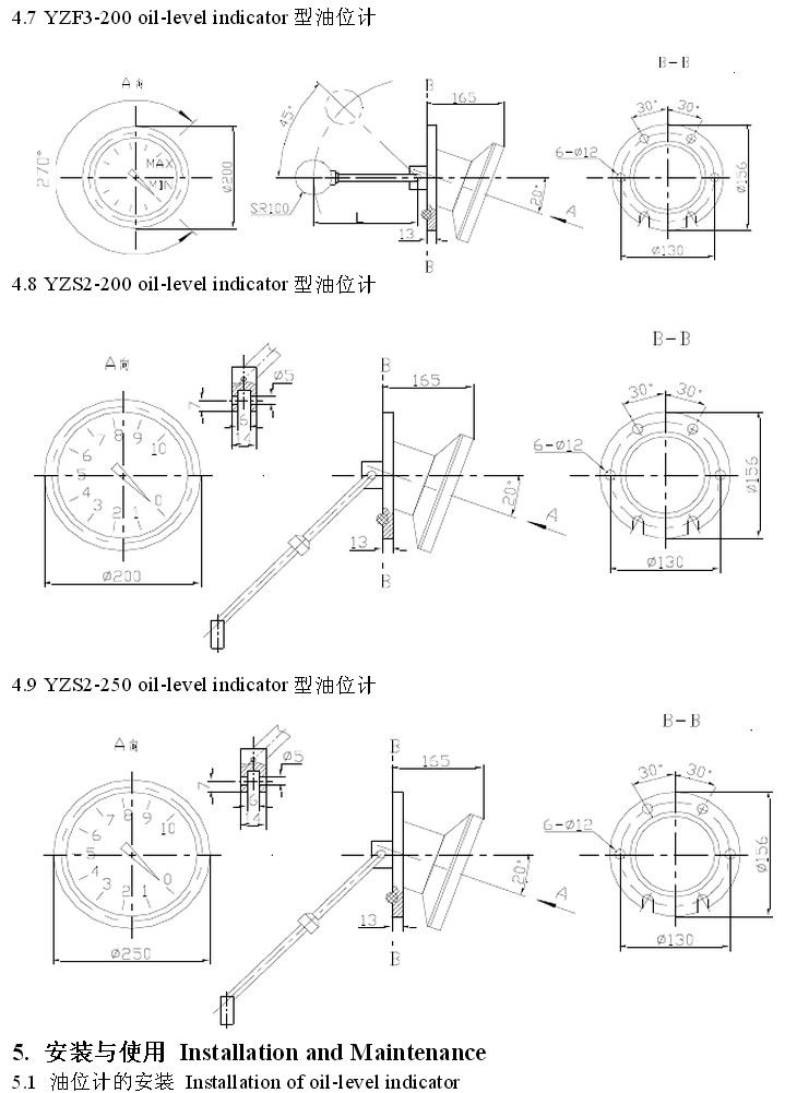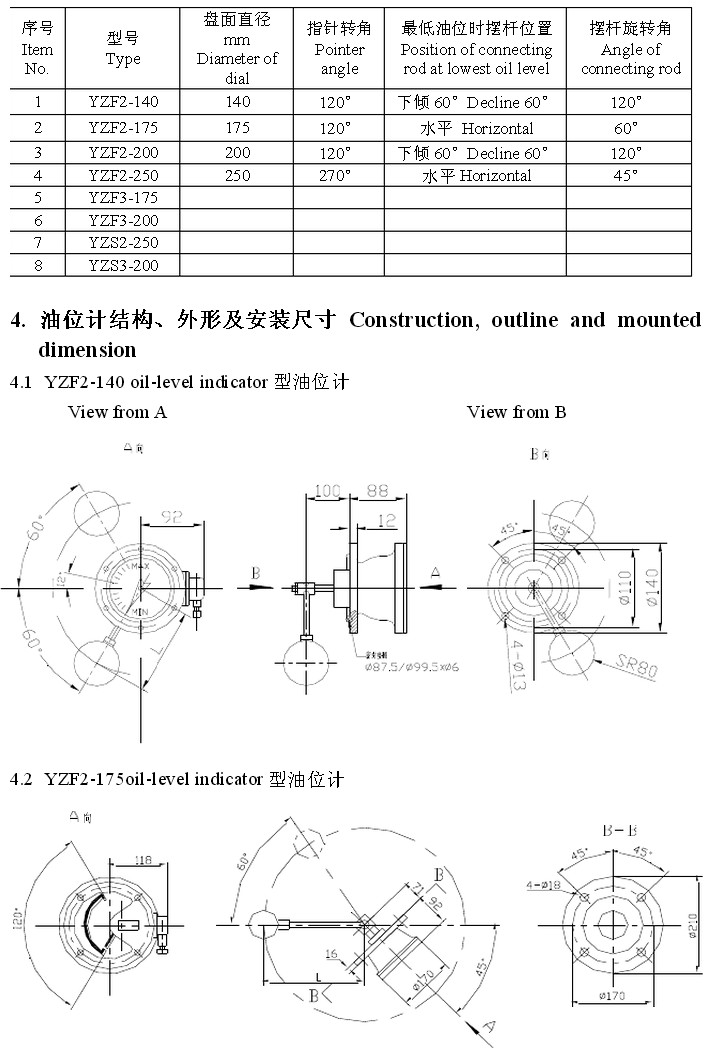 YZF2-140,YZF2-175,YZF2-200,YZF2-250,YZS3-250,YZS3-200,油位计