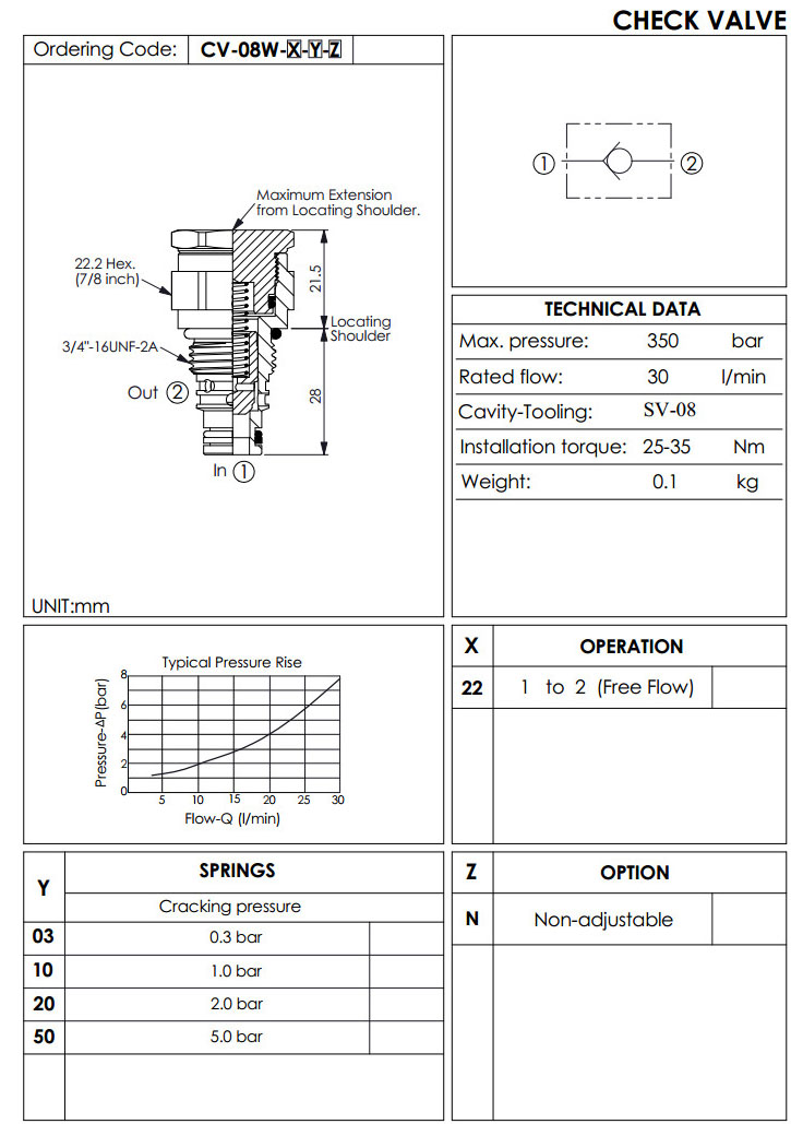 CV-08W-22-03-N,CV-08W-22-10-N,CV-08W-22-20-N,CV-08W-22-50-N,止回阀
