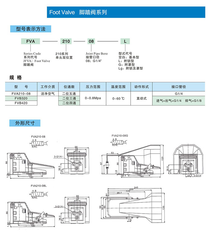 FVA210-08,FVA210-08L,FVA210-08G,脚踏阀