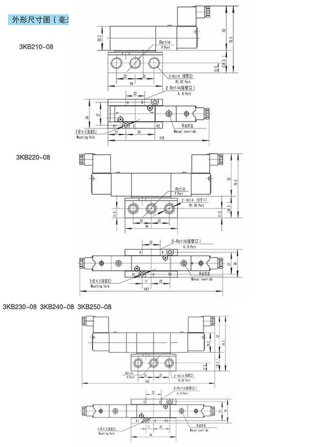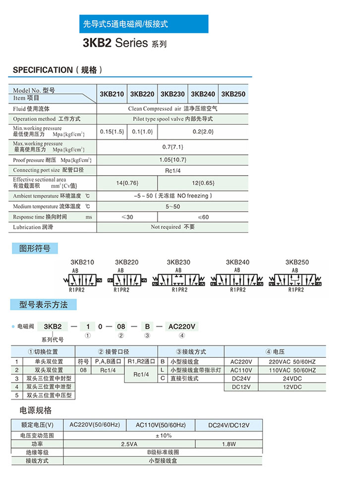 3KB210-08,3KB220-08,3KB230-08,3KB240-08,3KB250-08,3KB210-08-B,先导式五通电磁阀
