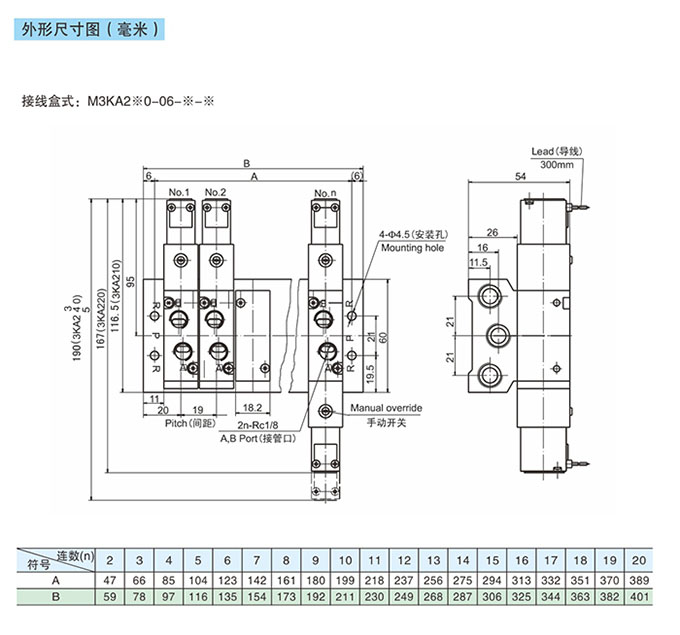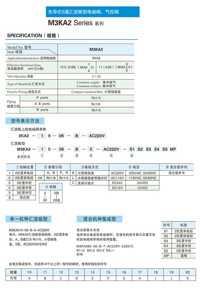 3KA219-06,3KA229-06,3KA239-06,3KA249-06,3KA259-06,3KA289-06,3KA219-06-B,先导式五通汇流板型电磁阀