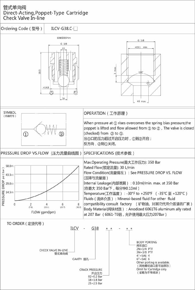 ILCV-G38.C-02,ILCV-G38.C-18,ILCV-G38.C-25,管式单向阀