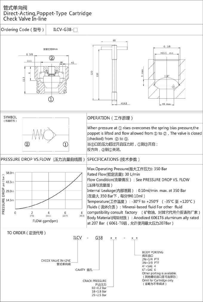 ILCV-G38-02,ILCV-G38-18,ILCV-G38-25,管式单向阀