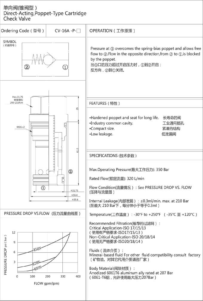 CV-16A-P-03,CV-16A-P-10,CV-16A-P-20,CV-16A-P-35,CV-16A-P-50,单向阀