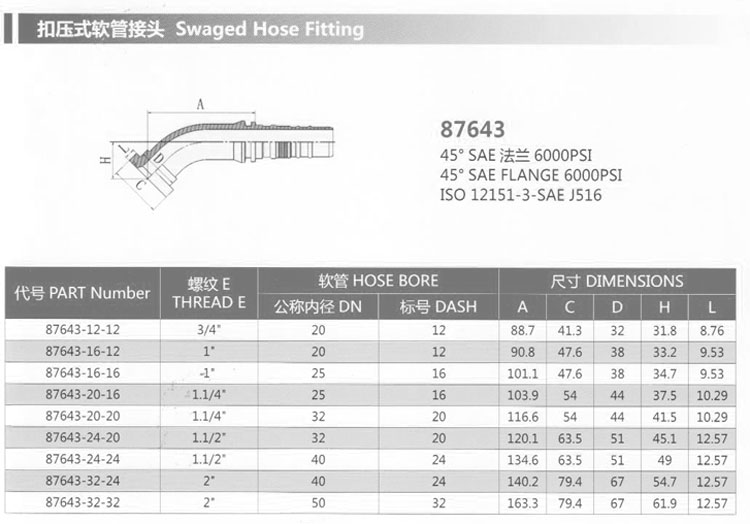 87643-12-12,87643-16-12,87643-20-16,87643-24-20,87643-32-24,扣压式软管接头
