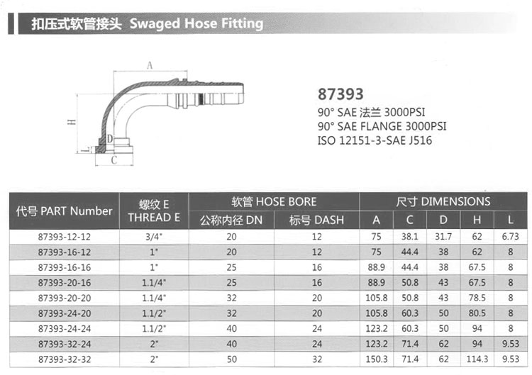 87393-12-12,87393-16-12,87393-20-16,87393-24-20,87393-32-32,扣压式软管接头
