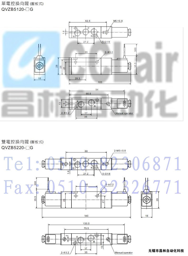 QVZB5320-3G-01,QVZB5320-3D-01,QVZB5320-4G-01,QVZB5320-4D-01,二位/三位五通电控换向阀