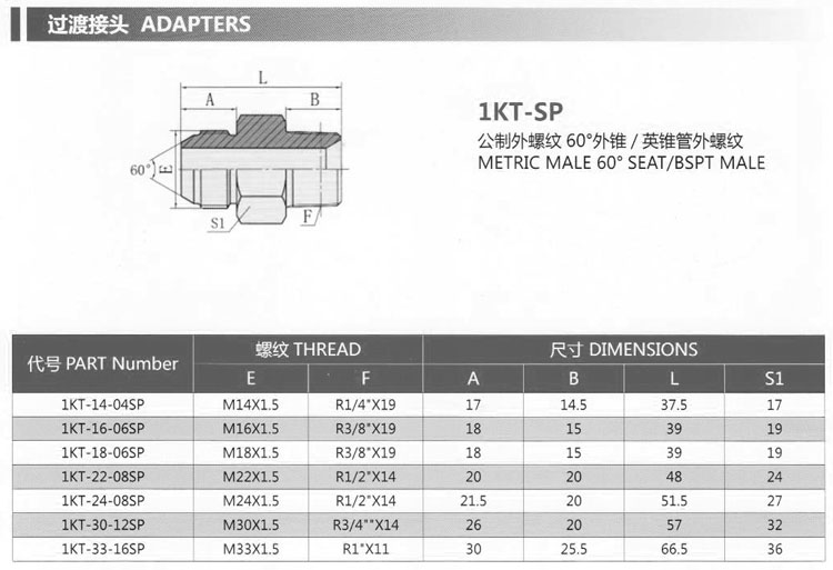 1KT-14-04SP,1KT-16-06SP,1KT-18-06SP,1KT-22-08SP,1KT-24-08SP,1KT-30-12SP,1KT-33-16SP,过渡接头