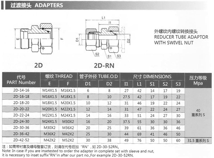 2D-14-16,2D-16-18,2D-18-20,2D-20-22,2D-22-24,2D-24-30,2D-30-36,2D-36-42,2D-42-52,转换接头