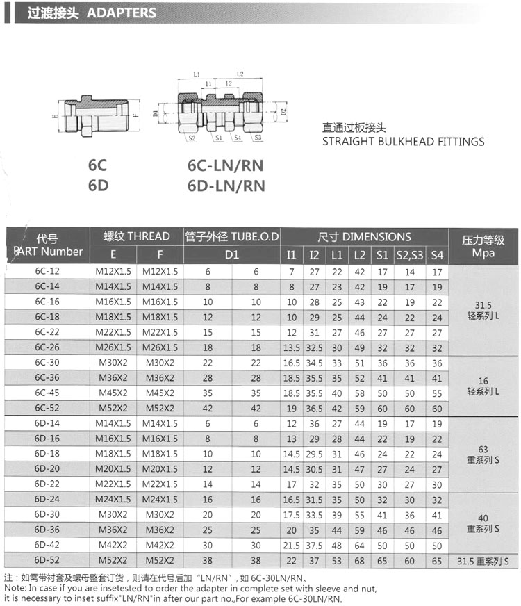 6C-12,6C-14,6C-16,6C-18,6C-22,6D-24,6D-30,6D-36,6D-42,6D-52,直通过板接头