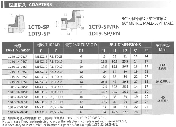 1CT9-12-02SP,1CT9-14-04SP,1CT9-16-04SP,1DT9-20-06SP,1DT9-22-08SP,1DT9-24-08SP,过渡接头