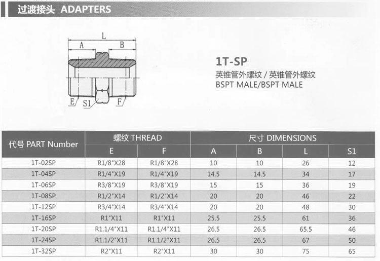 1T-02SP,1T-04SP,1T-06SP,1T-08SP,1T-12SP,1T-16SP,1T-20SP,1T-24SP,1T-32SP,过渡接头