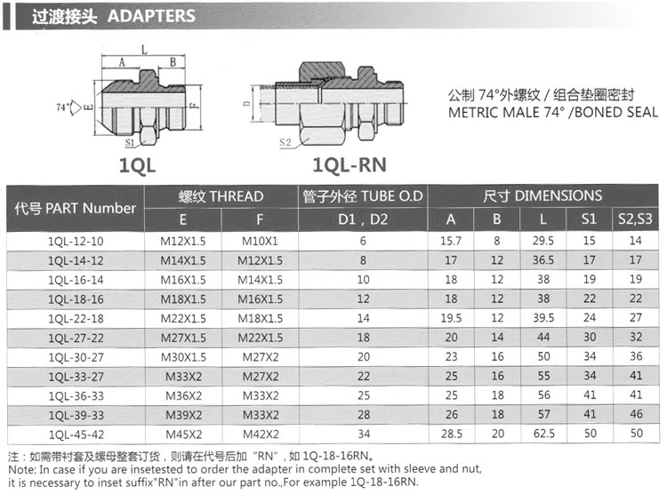 1QL-12-10,1QL-18-16,1QL-22-18,1QL-27-22,1QL-30-27,1QL-33-27,1QL-45-42,过渡接头