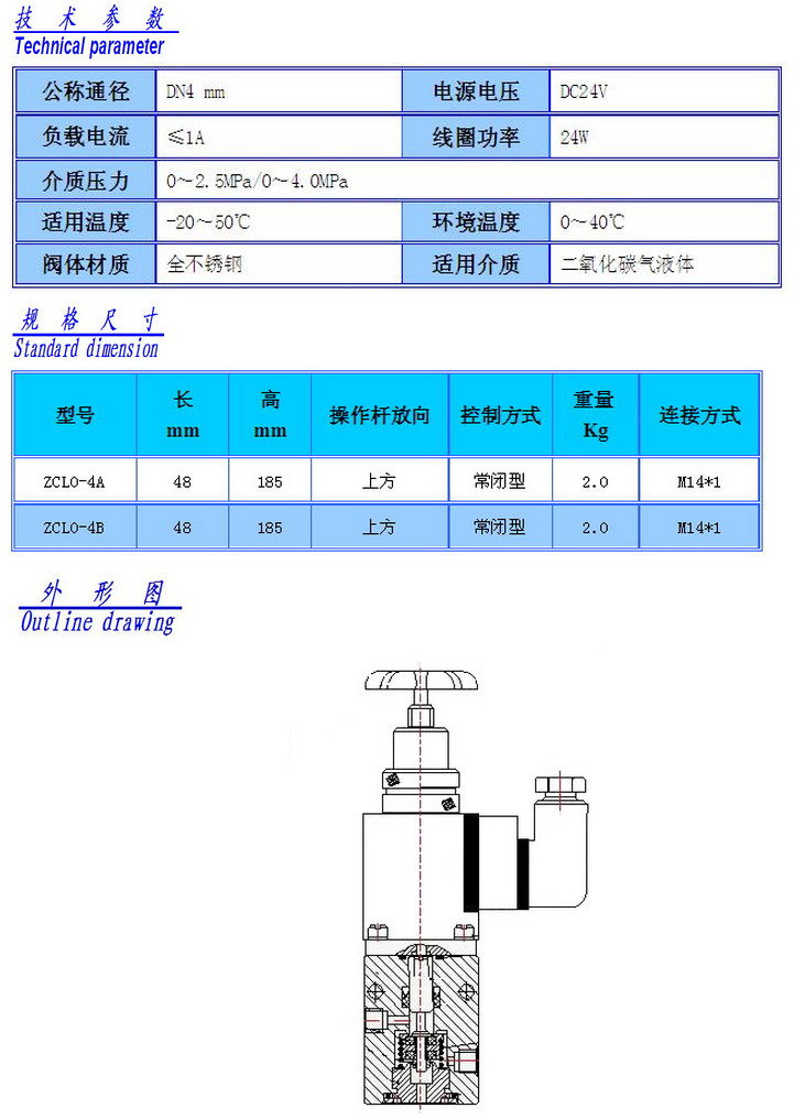 ZCLO-4A,ZCLO-4B,消防用气瓶电磁释放阀