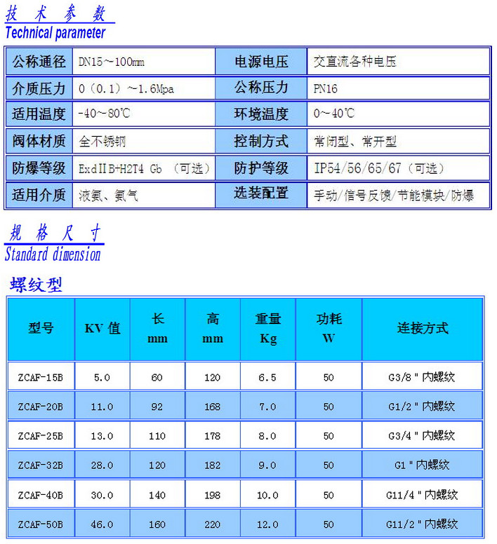 ZCAF-15B,ZCAF-20B,ZCAF-25BF,ZCAF-32BF,ZCAF-40BF,氨用不锈钢电磁阀
