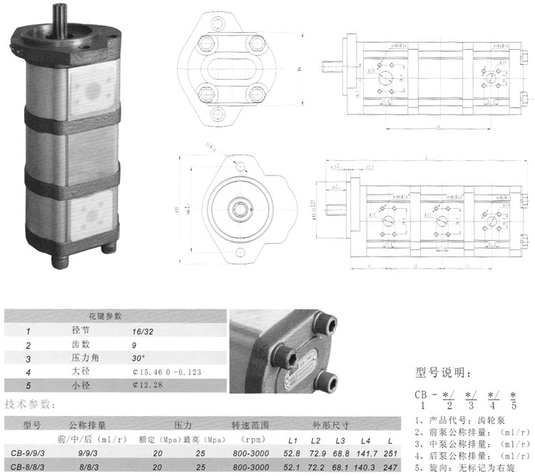 CB-9/9/3,CB-8/8/3,三联齿轮泵