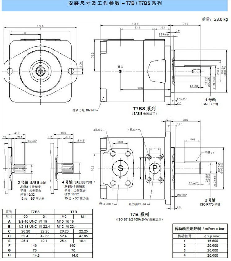 T7 B系列一100 A2 HW ISO 3019-2 2螺栓安装法兰 | 泵芯规格 | 传动轴代号 |