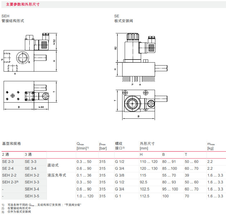 SE2-3/30F-P-G24,SE3-4/30F-P-G12,SEH3-2/30F-P-G24,SEH3-5/30F-P-G12,电动比例操纵式流量阀