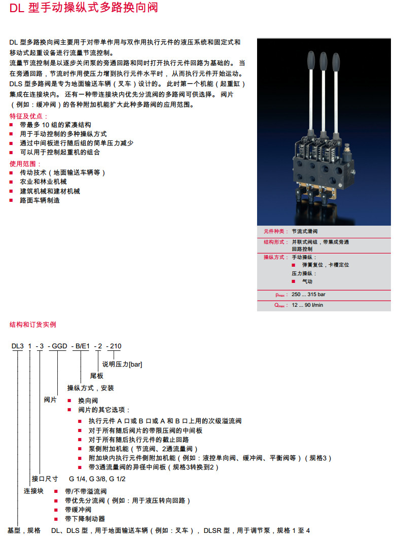 DL11-3-GGD-B/E1,DLSR31-3-GGD-B/E1,DLS41-3-GGD-B/E1,手动操纵式多路换向阀