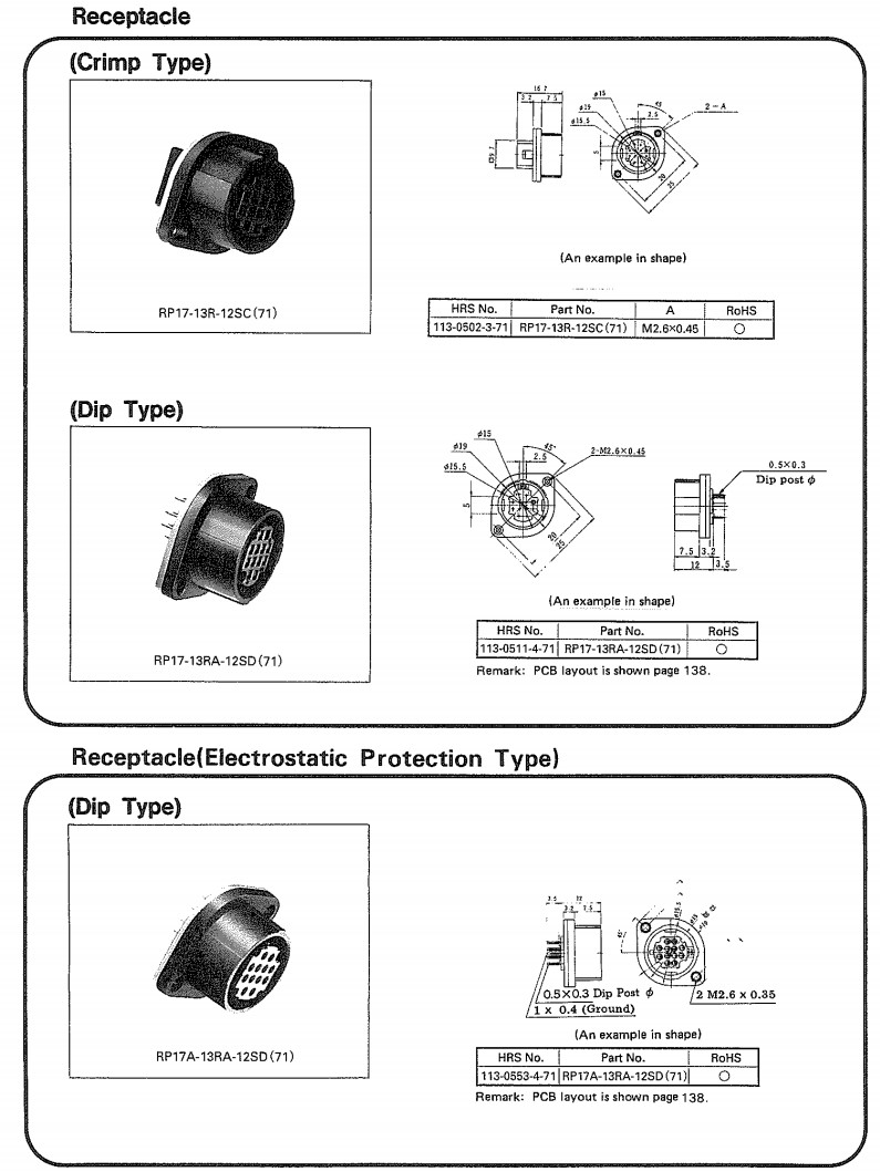 RP17-13P-12PC,RP17-13PA-12PC,RP17-13R-12SC,RP17-13RA-12SD,hirose连接器