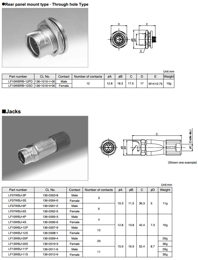 LF10WBJ-12P,LF10WBJ-12S,LF13WBJ-20P,LF13WBJ-20S,LF13WBJ-11P,LF10EBR-4P,
