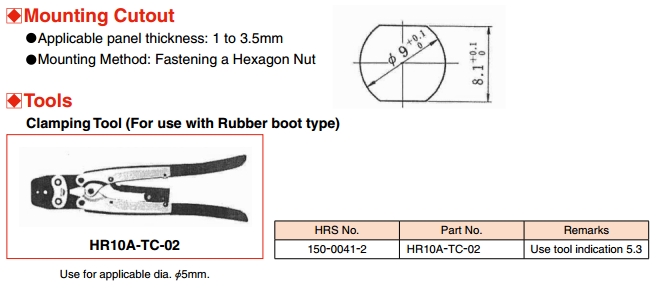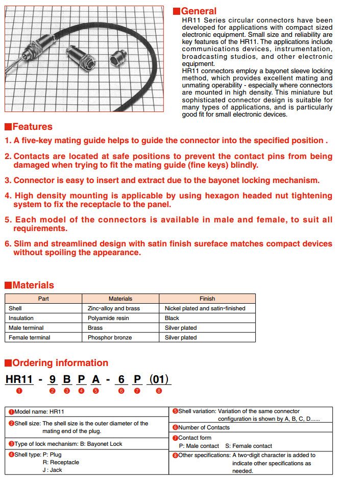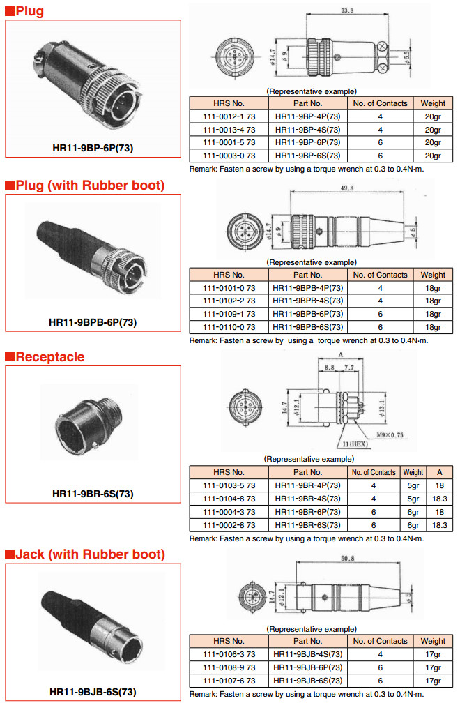 HR11-9BR-6P,HR11-9BR-6S,HR11-9BJB-4S,HR11-9BJB-6P,HR11-9BJB-6S,HR10A-TC-02,