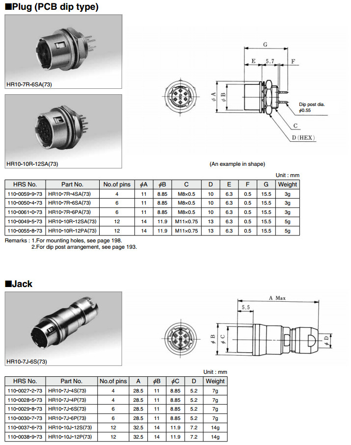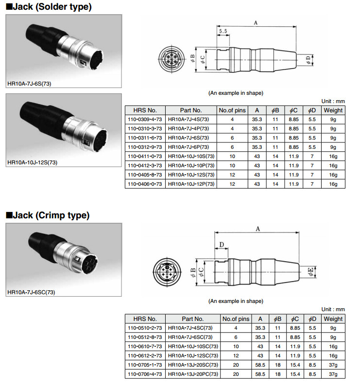 HR10G-13R-20PB,HR10-7R-C,HR10-10R-C,HR10A-7J-4S,HR10A-7J-4P,HR10A-7J-6S,HR10A-7J-6P,