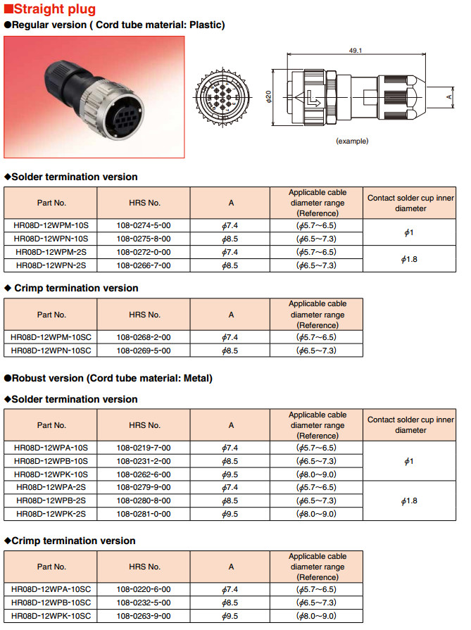 HR08D-12WPN-10S,HR08D-12WPM-2S,HR08D-12WPN-10SC,HR08D-12WPA-10S,HR08D-12WPB-10S,