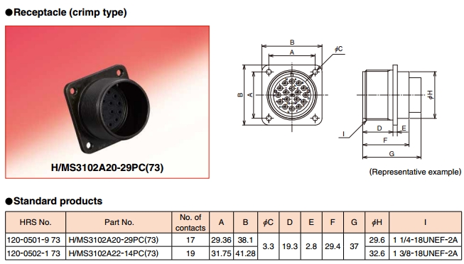 H/MS3102A20-29PC,H/MS3102A22-14PC,hirose连接器