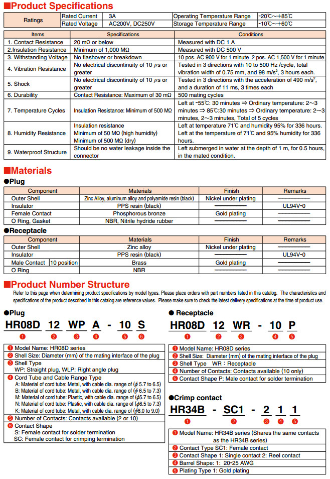 HR08D-12WPM-10S,HR08D-12WPN-2S,HR08D-12WPM-10SC,HR08D-12WPA-2S,