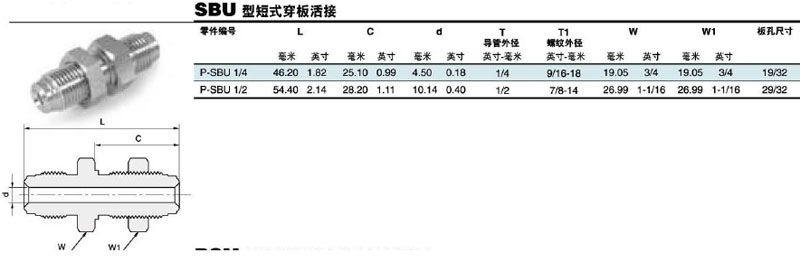 P-SBU-1/4,P-SBU-1/2,短式穿板活接头