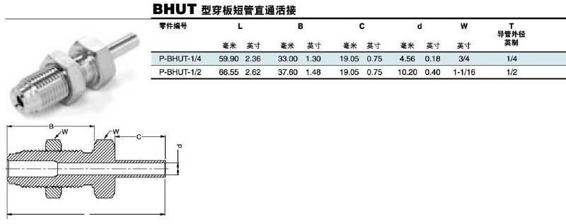 P-BHUT-1/4,P-BHUT-1/2,穿板短管直通活接头